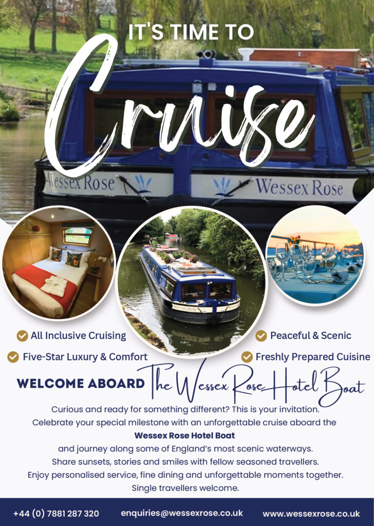The Wessex Rose Hotel Boat offers a unique way to explore England’s inland waterways in five-star comfort. This luxury wide-beam floating hotel combines the charm of traditional canal cruising with boutique-style accommodation, spacious en-suite cabins and attentive crew service. All-inclusive cruises last four to seven nights and feature freshly prepared meals, from breakfast to four-course dinners with wines. Routes along the River Thames and Grand Union Canal pass through picturesque countryside and historic towns such as Windsor, Henley-on-Thames, Marlow, Berkhamsted and Stoke Bruerne. Guests range from couples celebrating special occasions to small groups and solo travellers, all seeking a relaxed, intimate and memorable luxury escape on England’s waterways.