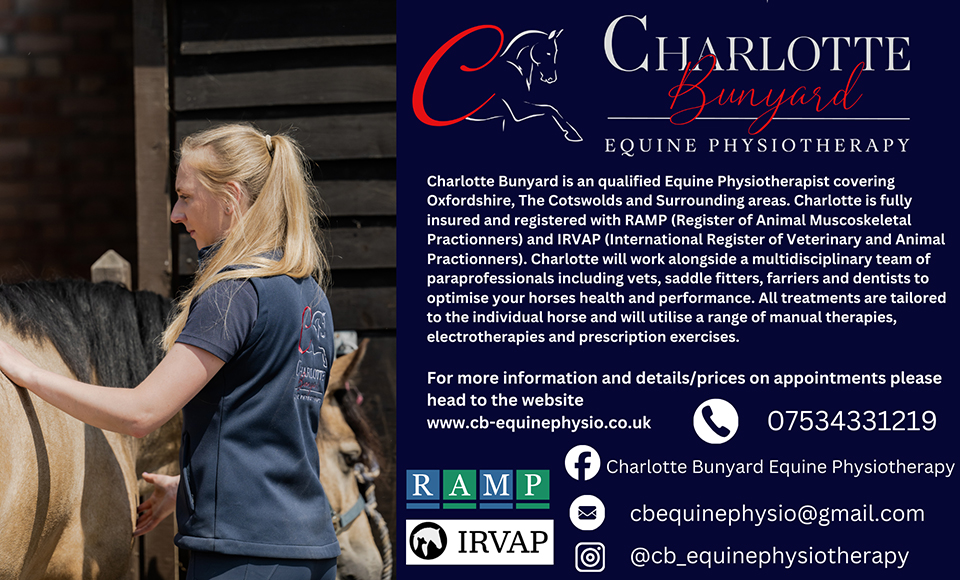 If you would like to know how physiotherapy could help your horse, visit www.cb-equinephysio.co.uk.